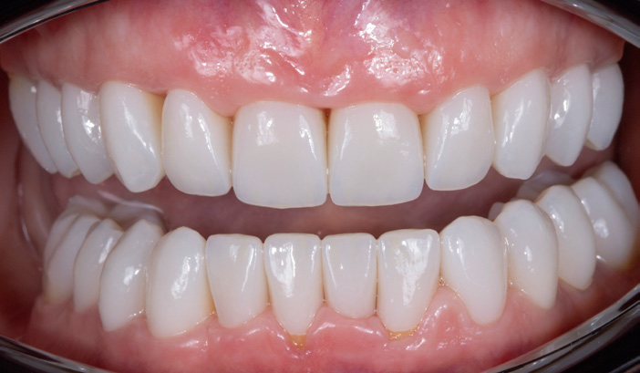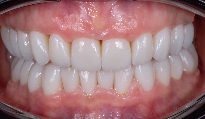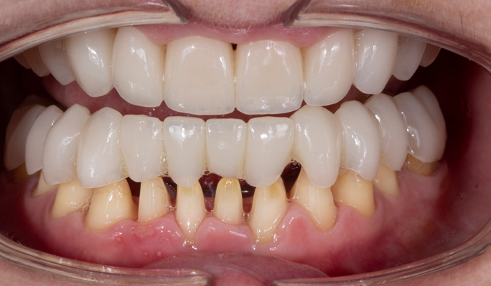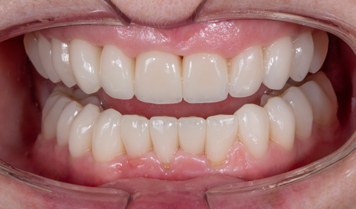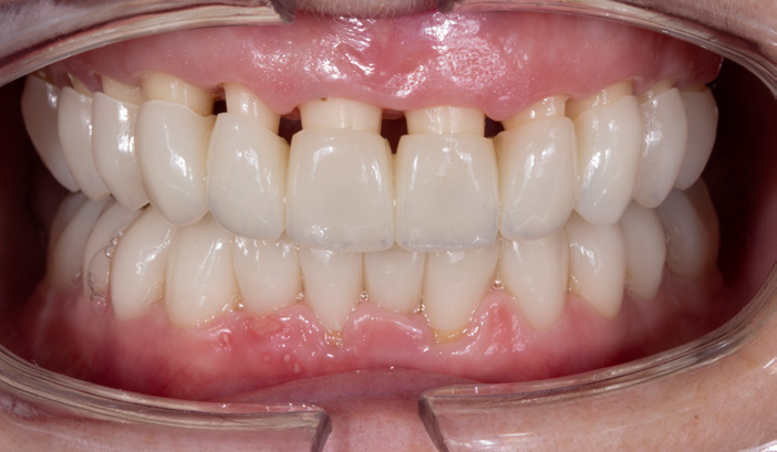 FIGURES 3 and 4: Full arch, temporary PMMA restorations