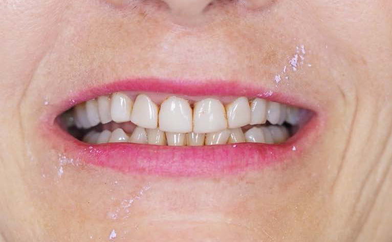 Once the aesthetics, shape, proportions and occlusion were verified and adjusted, the restorations were milled from 24 blocks of Initial Lisi Block, shade A1 LT (Figures 9 and 10). From UR4 to UL4 and LL4 to LR4, a small vestibular reduction of 0.2-0.3 mm was made; the more posterior crowns were left fully monolithically. The shade A1 LT (low translucency) was chosen because all restorations were full crowns. A high translucency could lead to loss of value in this case, resulting in a more greyish appearance of the crowns. Being a complete rehabilitation and favourable substrate, a cut-back and micro layering was chosen, which gives natural aesthetics thanks to the combination of the Initial IQ Lustre Pastes One, Initial Spectrum Stains and Initial IQ Sqin ceramics – the ‘One Sqin’ concept (GC).