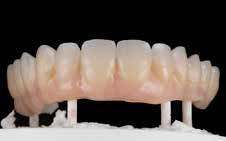 Fig. 7: Zirconia framework after removal from the disk and manual cut-back.